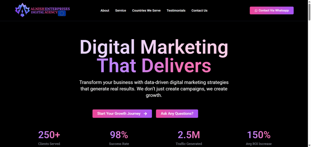 A modern service website showcasing web development and digital marketing offerings, designed with a clean layout and easy navigation to highlight the agency’s core services.